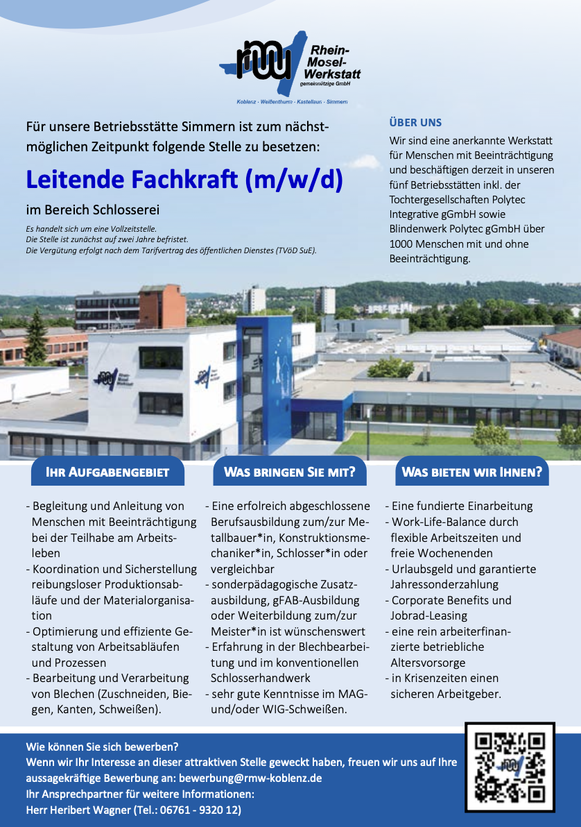 Leitende Fachkraft im Bereich Schlosserei (m/w/d)