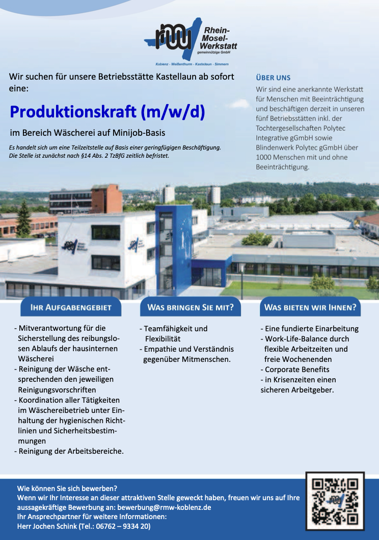 Produktionskraft im Bereich Wäscherei auf Minijob-Basis (m/w/d)