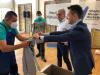 „Wir werden ein Unified Fußballteam und Tischtennis Spieler stellen,“ weiß Reiner Plehwe. Der Leiter Bildung und Rehabilitation der RMW ist seit Jahren ehrenamtlich für Special Olympics aktiv und arrangierte nun diese spannende Reise. „Wir freuen uns riesig“, verlautete Christian Pischke, seineszeichens Mitarbeiter in der Schreinerei und Torwart des Fußball Teams, als Mitte der Woche hoher Besuch in der Sporthalle der RMW-Hauptstelle aufwartete. Der Koblenzer Oberbürgermeister David Langner war eigens zu Besuch, um die Delegation zu verabschieden. „Ich wünsche Ihnen allen viel Freude und Erfolg, sowie tolle Erlebnisse und Begegnungen.“ Den Zuhörenden war die Vorfreude anzusehen, erst recht, als die neuen Hoodies verteilt wurden. Die hauseigene Werbetechnik-Abteilung hatte die Kapuzenpullis mit dem aktuellen Logo zum 50-jährigen Jubiläum bedruckt. Zur Überraschung für den prominenten Gast, hatte Betriebsleiter Dirk Schaal auch ein individuelles Exemplar für ihn parat. „Spätestens zu den Landesspielen im September hier in Koblenz werde ich diesen auftragen“, freute sich David Langner, „aber jetzt macht erstmal reichlich Werbung für Koblenz in der Weltstadt Berlin.“ Am kommenden Sonntag (17.10 Uhr) wird das RMW Fußballteam in Person von Christian Pischke übrigens in der ZDF Sportreportage zur besten Sendezeit zu sehen sein. Nachdem ein Filmteam ihn in der Vorwoche im Werkstatt- und Trainingsalltag begleitet hatte, wird am Samstag auch noch seine Ankunft in Berlin aufgenommen werden. Morgen früh werden die Fußballer der RMW Koblenz und Christian im ZDF Morgenmagazin zu sehen sein.
