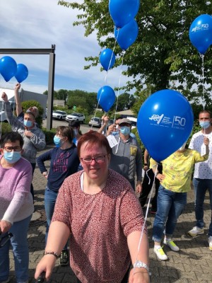 Am Freitag, 03. Juni haben die Mitarbeiterinnen und Mitarbeiter der Betriebsstätte Kastellaun mit der Sonne um die Wette gestrahlt. Denn es gab etwas zu Feiern. Die Rhein–Mosel-Werkstatt konnte auf 50 Jahre Bestehen zurückblicken und das war natürlich ein Grund zum Feiern. Alle Mitarbeiterinnen und Mitarbeiter hatten sich schon sehr auf den Tag gefreut. Nach einem gemeinsamen Frühstück in den Gruppen ging es vor die Tore um zu feiern und zu spielen. Neben einem Lufballon-Wettbewerb gab es noch viel Spiel & Spaß, unter anderem mit einer Foto Box. Hier wurden über den Tag verteilt mehr als 1.100 Fotos gemacht. Zur Mittagszeit servierte ein Food –Truck leckere Hamburger in allen Varianten mit Pommes. Als Nachtisch wurde Spagetti-Eis serviert. Es war alles richtig lecker! Als Höhepunkt wurde beim Rundgang vom Werkstattrats-Vorsitzenden, in Beisein durch Geschäftsführer und Betriebsleiter, jeder Gruppe ein Gutschein für eine Erlebnis-Flugsimulation in Kastellaun ausgegeben. Dieser Gutschein kann von jeder Gruppe individuell eingelöst werden. Am frühen Nachmittag ging ein schöner Tag mit vielen Eindrücken zu Ende.