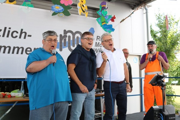 Am vergangenen Freitag feierte die Betriebsstätte Koblenz das 50-jährige Bestehen der Rhein-Mosel-Werkstatt mit einem großen Sommerfest. Die Planung sowie die Organisation für dieses besondere Fest fand schon einige Woche zuvor statt, schließlich sollte es ein schönes und abwechslungsreiches Sommerfest zum runden Geburtstag geben. So starteten die Feierlichkeiten am Freitagmorgen erst einmal mit einem leckeren Frühstück für alle Beteiligten. Im Anschluss gaben unser Betriebsleiter Dirk Schaal sowie der Werkstattratsvorsitzende Kai Schütz den offiziellen Startschuss für das Sommerfest – die Party wurde gestartet. In einer Rede fasste Hedi Westphal noch einmal die Ereignisse aus den letzten 50 Jahren der RMW, von der Entstehung bis zum Tag des Sommerfestes zusammen, um auch noch einmal die Entwicklung der Rhein-Mosel-Werkstatt in den vergangenen 50 Jahren aufzuzeigen. Nach den einleitenden Worten und dem Rückblick zur Geschichte der RMW übernahmen die Unterhaltungskünstler Willi, Torty de Banana, der Müllwerker und Bruno Lehan das Kommando auf der Bühne. Kurze Zeit später wurde dann auch die RMW-Karaoke-Box gestartet. Viel Mitarbeitende, Teilnehmende aber auch aus dem Personal haben sich für einen Song bei der Karaoke angemeldet. Mit tollen und kreativen Auftritten heizten die „Stars“ die Partybelegschaft so richtig ein. Auch für das leibliche Wohl wurde bestens gesorgt, schließlich konnten die Feiernden zwischen Pizzen, Currywurst und Pommes sowie Eis zum Nachtisch wählen. Neben den tollen Auftritten auf der RMW-Bühne bot sich aber auch ausreichend Gelegenheit, sich über die vielen schönen Momente in den vergangenen Jahren auszutauschen.