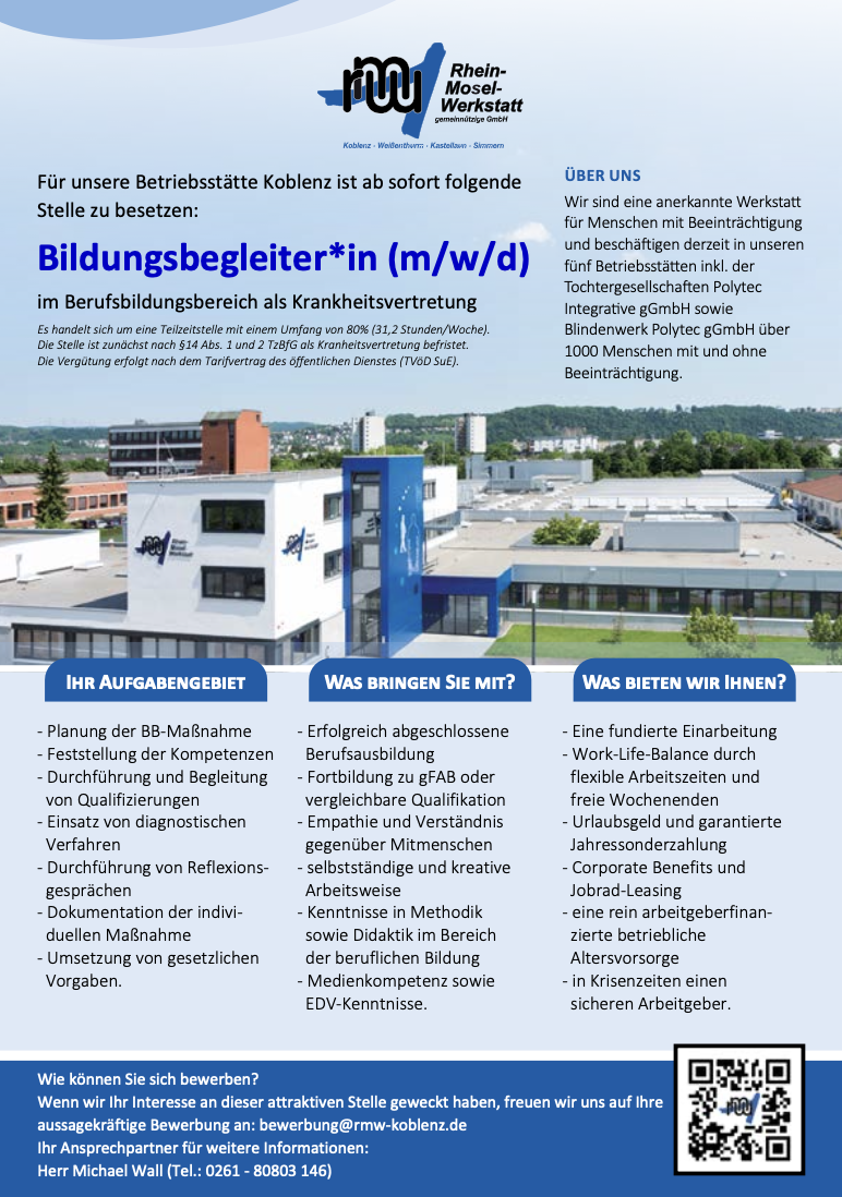 Für unsere Betriebsstätte Koblenz ist ab sofort folgende Stelle zu besetzen: