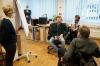 Dies war eine Steilvorlage für die Gastgeber, um die Neuzugänge im Bürodienstleistungsbereich vorzustellen. Christina Herbst-Witz erläuterte zunächst den Weg von Theorie zur Praxis, mit „Meilensteinen und Stolpersteinen“. Aber dann lernte Matthias Rösch die beiden neuen Azubis kennen, die durch das Budget für Ausbildung seit dem 1. September dieses Jahres ihren Beruf Fachpraktiker für Bürokommunikation bei der Polytec Integrative erlernen können.