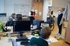 Lena Knopp und Antonius Berenz haben sich für diesen Weg entschieden, der nach vier Jahren zum erfolgreichen Abschluss führen soll. „Es brauchte Pioniergeist und einen langen Atem“, blickte Christina Herbst-Witz zurück, „dazu musste ein Steuerungs- und Koordinationsteam gebildet werden“. Es ist eine Teilzeitausbildung, mit sozialpädagogischer Begleitung, Stütz- und Förderunterricht und einer Arbeitsassistenz. „Der Aufwand ist erheblich, aber es kann sich lohnen.“ Und der Eindruck, den die beiden Auszubildenen dann im barrierefreien Bürodienstleistungsbereich hinterließen, bestätigt alle Anstrengungen. Lena Knopp und Antonius Berenz präsentierten ihre Arbeitsbereiche und plauderten über Tätigkeiten, Chancen und Wünsche. Matthias Rösch hörte zu und wollte viel wissen und es entwickelte sich ein Gespräch, an dessen Ende der Gast die Gewissheit erhielt, dass die Umsetzung des Budgets für Ausbildung in der Rhein-Mosel-Werkstatt gut anläuft. „Das ist Inklusion und ein Angebot einer anderen Form der Teilhabe am Arbeitsleben.“