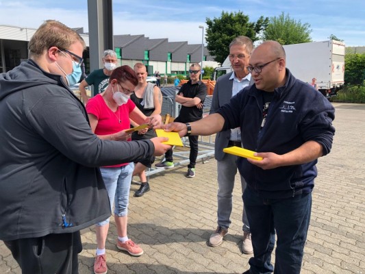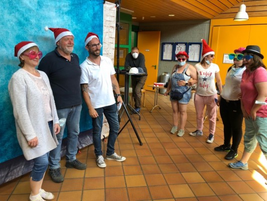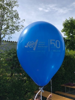 Am Freitag, 03. Juni haben die Mitarbeiterinnen und Mitarbeiter der Betriebsstätte Kastellaun mit der Sonne um die Wette gestrahlt. Denn es gab etwas zu Feiern. Die Rhein–Mosel-Werkstatt konnte auf 50 Jahre Bestehen zurückblicken und das war natürlich ein Grund zum Feiern. Alle Mitarbeiterinnen und Mitarbeiter hatten sich schon sehr auf den Tag gefreut. Nach einem gemeinsamen Frühstück in den Gruppen ging es vor die Tore um zu feiern und zu spielen. Neben einem Lufballon-Wettbewerb gab es noch viel Spiel & Spaß, unter anderem mit einer Foto Box. Hier wurden über den Tag verteilt mehr als 1.100 Fotos gemacht. Zur Mittagszeit servierte ein Food –Truck leckere Hamburger in allen Varianten mit Pommes. Als Nachtisch wurde Spagetti-Eis serviert. Es war alles richtig lecker! Als Höhepunkt wurde beim Rundgang vom Werkstattrats-Vorsitzenden, in Beisein durch Geschäftsführer und Betriebsleiter, jeder Gruppe ein Gutschein für eine Erlebnis-Flugsimulation in Kastellaun ausgegeben. Dieser Gutschein kann von jeder Gruppe individuell eingelöst werden. Am frühen Nachmittag ging ein schöner Tag mit vielen Eindrücken zu Ende.