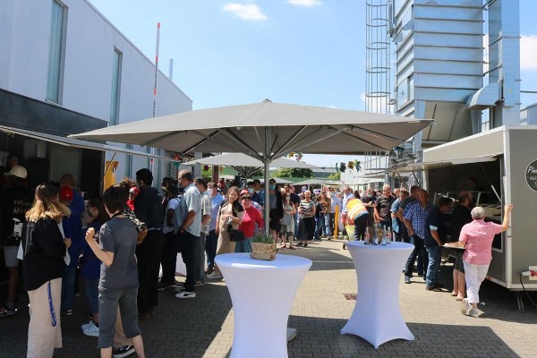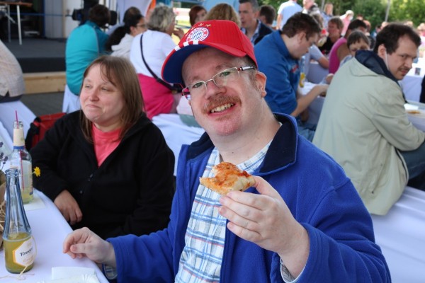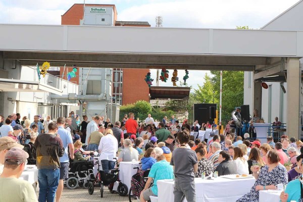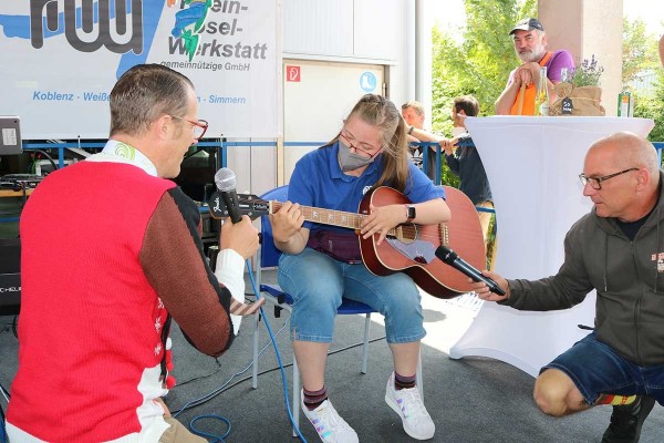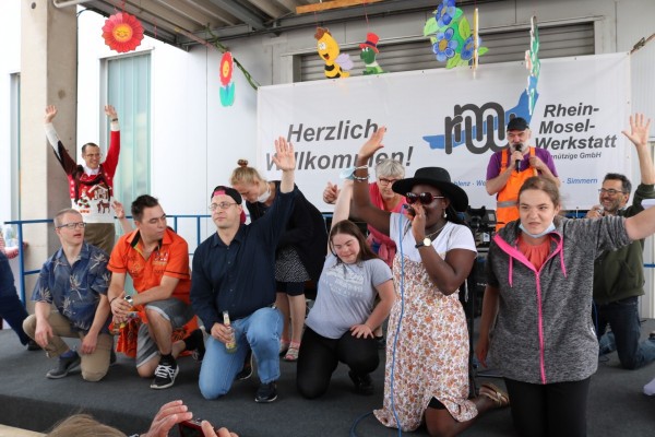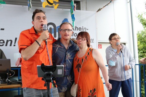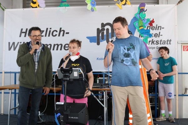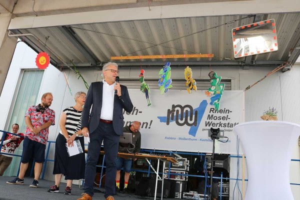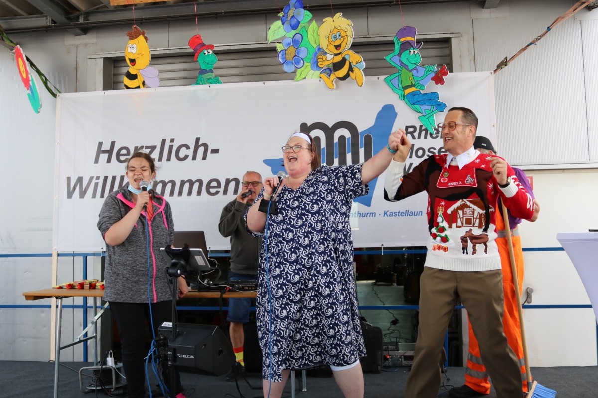 Am vergangenen Freitag feierte die Betriebsstätte Koblenz das 50-jährige Bestehen der Rhein-Mosel-Werkstatt mit einem großen Sommerfest. Die Planung sowie die Organisation für dieses besondere Fest fand schon einige Woche zuvor statt, schließlich sollte es ein schönes und abwechslungsreiches Sommerfest zum runden Geburtstag geben. So starteten die Feierlichkeiten am Freitagmorgen erst einmal mit einem leckeren Frühstück für alle Beteiligten. Im Anschluss gaben unser Betriebsleiter Dirk Schaal sowie der Werkstattratsvorsitzende Kai Schütz den offiziellen Startschuss für das Sommerfest – die Party wurde gestartet. In einer Rede fasste Hedi Westphal noch einmal die Ereignisse aus den letzten 50 Jahren der RMW, von der Entstehung bis zum Tag des Sommerfestes zusammen, um auch noch einmal die Entwicklung der Rhein-Mosel-Werkstatt in den vergangenen 50 Jahren aufzuzeigen. Nach den einleitenden Worten und dem Rückblick zur Geschichte der RMW übernahmen die Unterhaltungskünstler Willi, Torty de Banana, der Müllwerker und Bruno Lehan das Kommando auf der Bühne. Kurze Zeit später wurde dann auch die RMW-Karaoke-Box gestartet. Viel Mitarbeitende, Teilnehmende aber auch aus dem Personal haben sich für einen Song bei der Karaoke angemeldet. Mit tollen und kreativen Auftritten heizten die „Stars“ die Partybelegschaft so richtig ein. Auch für das leibliche Wohl wurde bestens gesorgt, schließlich konnten die Feiernden zwischen Pizzen, Currywurst und Pommes sowie Eis zum Nachtisch wählen. Neben den tollen Auftritten auf der RMW-Bühne bot sich aber auch ausreichend Gelegenheit, sich über die vielen schönen Momente in den vergangenen Jahren auszutauschen.